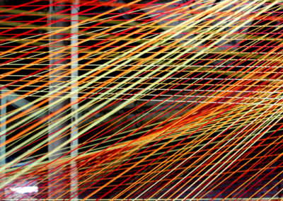 Inside the Malt House, Landon Moreis and the artistic duo of Michael Camillaci and Sara Svisco explore spatial intervention within the context of the 1907 building originally used for malting barley. Camillaci and Svisco capture solar rays as colorful cords while Landon Moreis creates floating fiber rings that draw viewers’ attention up into the five-story structure. On the exterior of the malt House, Avye Alexandres’ installation uses mirrors angled at various degrees and hung at a variety of heights in an effort to visually splice sky within the building’s brick facade.