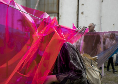 Projects are spread throughout the Silo City complex. Guests will be met by the playful rhizomedas xxx’s Solstice Field; a series of kinetic, moving pennants whose translucence will cast new patterns and colors on the ground. Brandon Geissmann dispersed various textual interventions throughout the site and inside both historic buildings. The text oscillates between visible and invisible as it reflects its surroundings, mimicking the colors and features composing the architecture of Silo City.