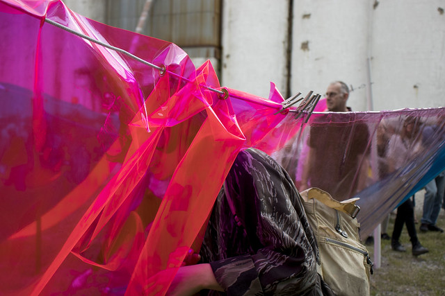 Inside the Perot Grain Elevator, Justina Dziama has hung a series of latex shrouds cast from the building’s facade to speak about industrial disintegration. By isolating the evidence of a material’s transformation, each sheet provides viewers a new way to relate to the junction between the natural and the industrial.